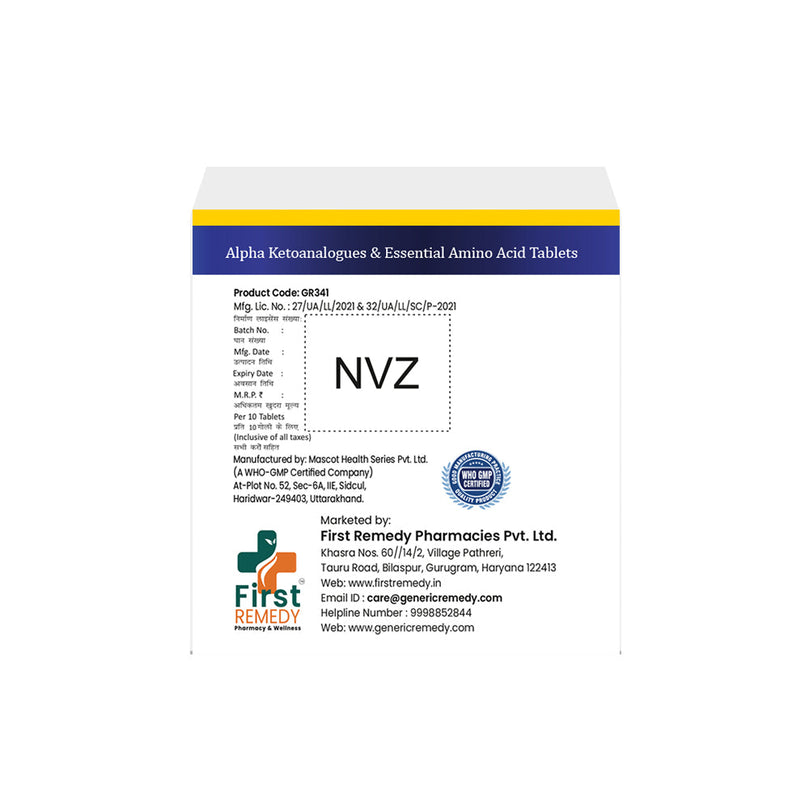Alpha Ketoanalogue and Essential Amino Acid Tablets IP is a nutritional supplement used to support conservative management of chronic kidney disease (CKD) in patients not yet on dialysis.