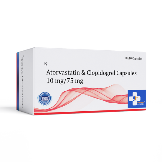 Atorvastatin 10mg & Clopidogrel 75mg Capsules are used to prevent heart attack and stroke. They help lower bad cholesterol (LDL) levels, increase good cholesterol (HDL), and prevent blood clots.