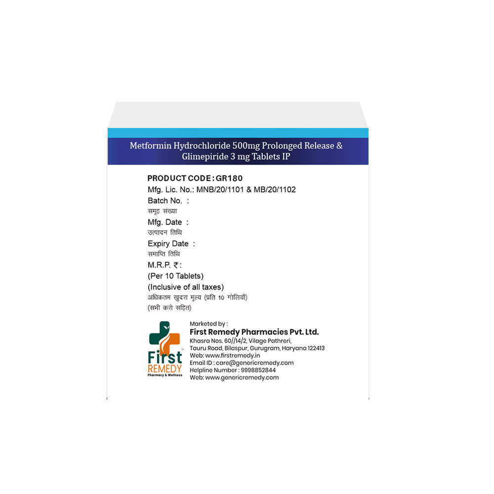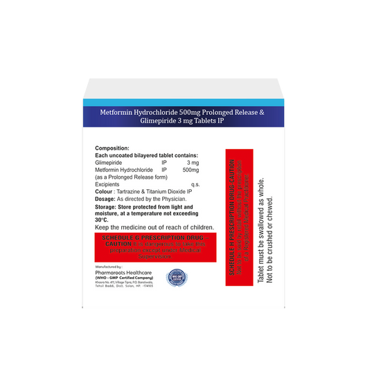 Glimepiride IP 3 mg & Metformin 500 mg Tablet PR is an anti-diabetic medicine used to treat type 2 diabetes mellitus, also known as non-insulin-dependent diabetes mellitus.