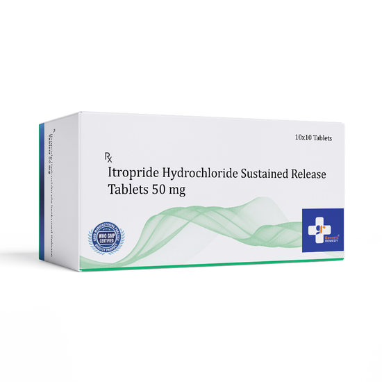 Itopride 50 mg Tablet works by inhibiting acetylcholinesterase, which increases acetylcholine levels in the body. This enhances gastrointestinal peristalsis, accelerates gastric emptying, and facilitates the movement of food through the digestive tract. Additionally, it blocks D2 receptors in the chemoreceptor trigger zone (CTZ) of the brain, helping to prevent nausea and vomiting.