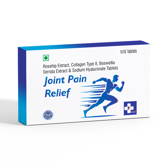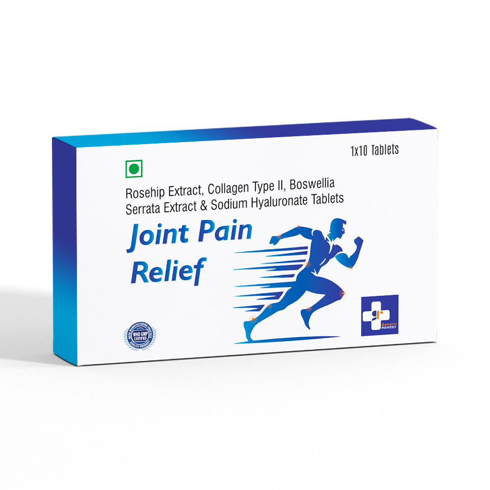 Joint Pain Relief Tablets is a combination oral formulation containing Boswellia Serrata Extract, collagen Hydrolysate & rosehip Extract belongs to the class of nutritional supplements, primarily used to treat inflammation and injuries in the knee and joints, particularly in auto-immune conditions like osteoarthritis.