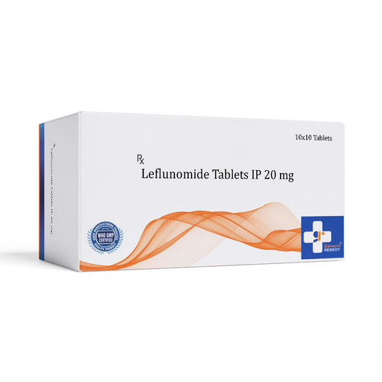Leflunomide Tablets IP 20mg is a disease-modifying antirheumatic drug (DMARD) that stops the DNA (genetic material) of the provoked immune system cells required for their survival. Thus, it aids in reducing inflammation, redness, and swelling in the affected area (particularly joints).