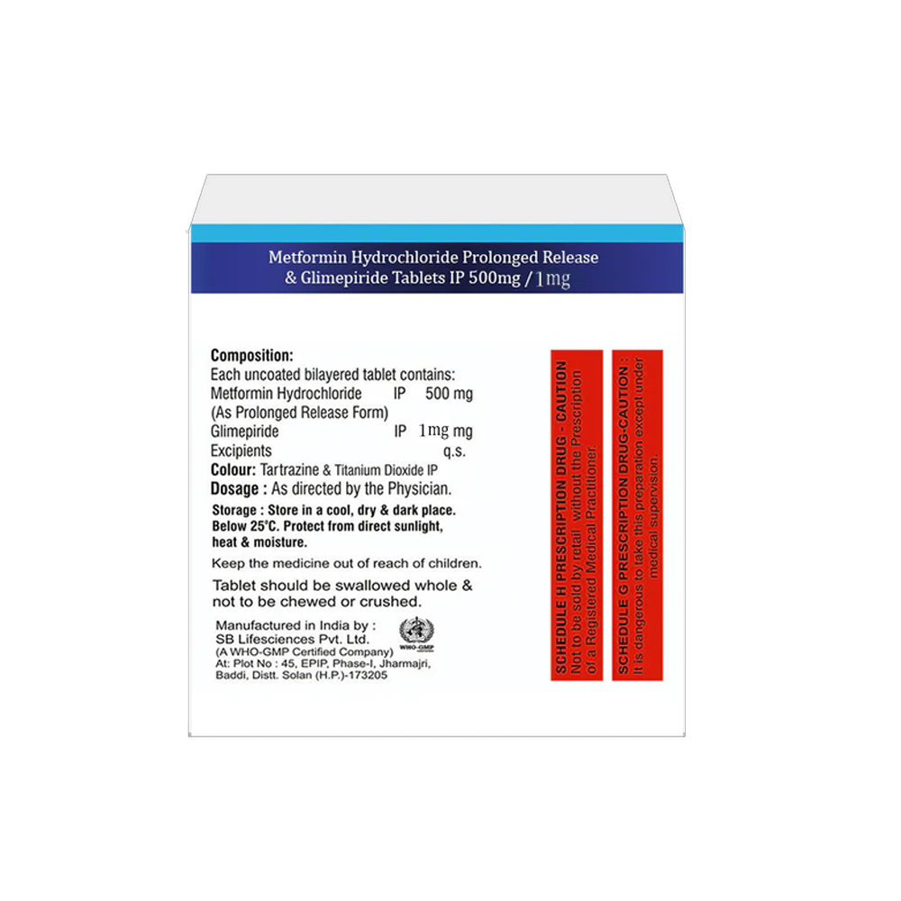 Glimepiride IP 1 mg & Metformin 500 mg Tablet PR is an anti-diabetic medicine used to treat type 2 diabetes mellitus, also known as non-insulin-dependent diabetes mellitus.