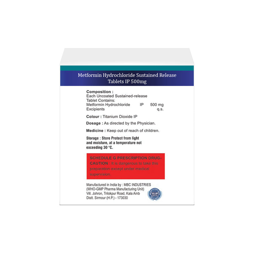 Metformin Hydrochloride Sustained Release Tablets IP 500 mg contain Metformin, which primarily decreases glucose production by the liver and improves the body's response to insulin, a hormone that regulates blood sugar levels. It may also slightly reduce glucose absorption from the intestines. These combined effects help control blood glucose levels in people with type 2 diabetes