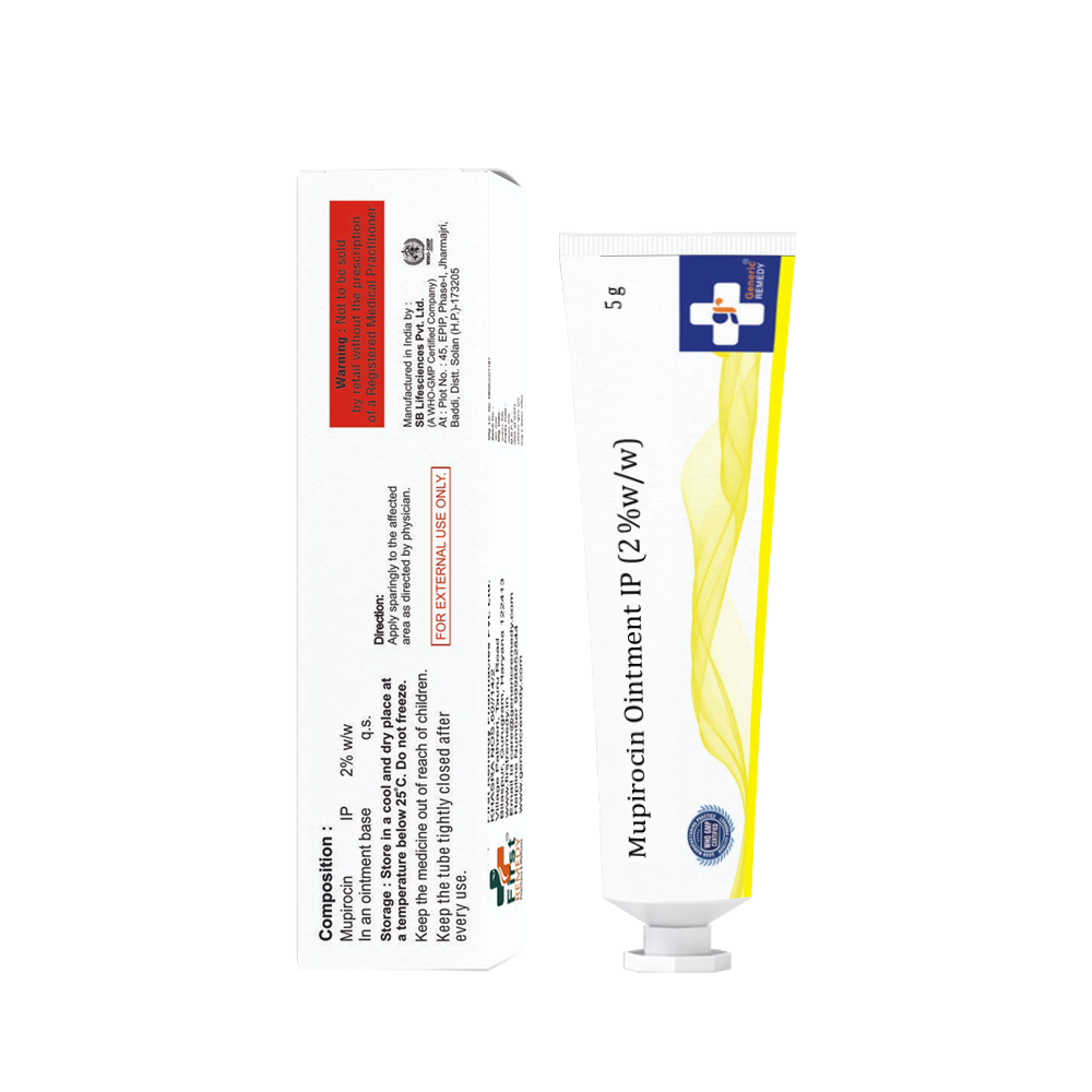 Mupirocin Ointment IP 2% w/w is a topical antibiotic used to treat bacterial skin infections, such as impetigo, caused by bacteria like Staphylococcus aureus and Streptococcus pyogenes. A bacterial infection occurs when bacteria multiply in the body and cause illness, which can affect any part of the body and spread if not treated.