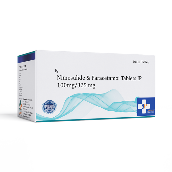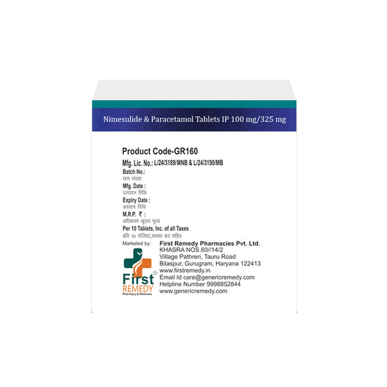 Nimesulide 100 mg & Paracetamol 325 mg Tablet is a non-steroidal anti-inflammatory drug (NSAID) combination used to relieve pain and reduce inflammation and fever. It is commonly used for conditions such as osteoarthritis, rheumatoid arthritis, ankylosing spondylitis, dysmenorrhea (menstrual pain), dental pain, muscle pain, back pain, ear pain, and throat pain.