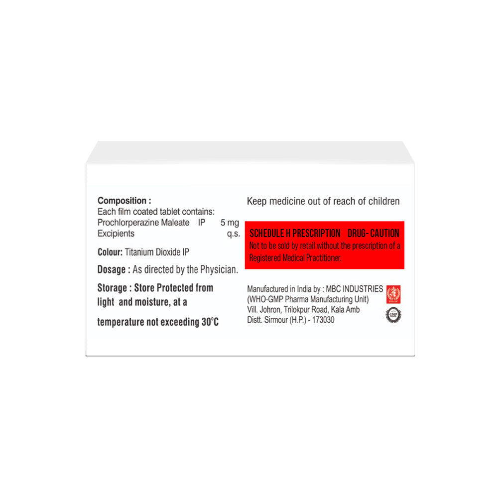Prochlorperazine Tablets IP 5 mg contains Prochlorperazine maleate, which works by inhibiting the effect of the natural chemical in the brain (dopamine), thereby helping treat nausea and vomiting.