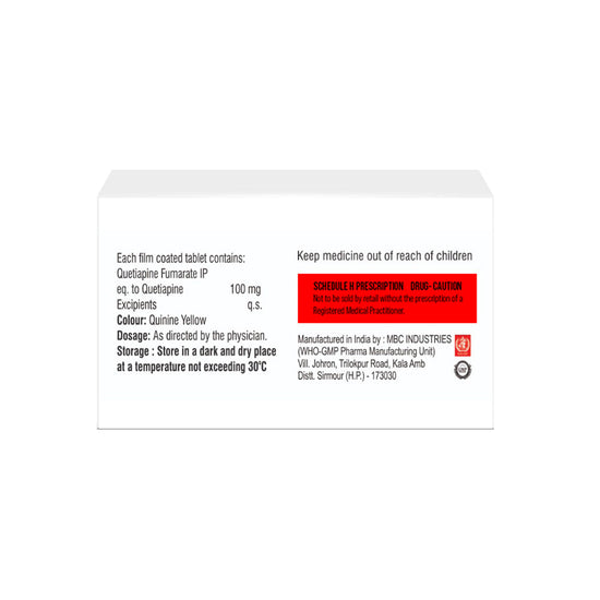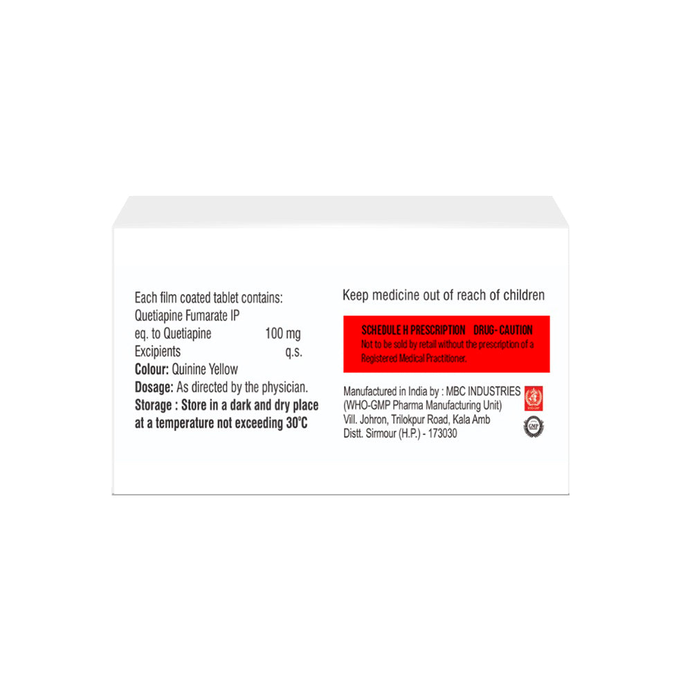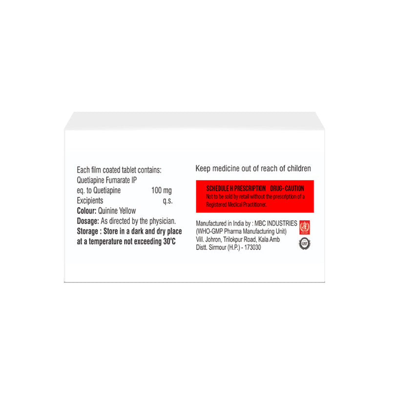 Quetiapine Tablets IP 100 mg contain quetiapine, which is an antipsychotic drug. It acts by blocking dopamine, a hormone in the brain responsible for developing symptoms of schizophrenia and bipolar disorder. Quetiapine Tablets IP 100mg also affects other neurotransmitters in the brain, such as serotonin, and its beneficial effects may also be related to this. Altogether, Quetiapine Tablets IP 100mg rebalances dopamine and serotonin to improve thinking, mood, and behaviour.