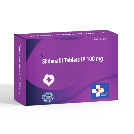 Sildenafil Tablets IP 100 mg belong to a class of medicines called phosphodiesterase type-5 (PDE5) inhibitors. They are primarily used to treat erectile dysfunction (impotence) in adult men. Additionally, Sildenafil may be prescribed to treat pulmonary arterial hypertension (high blood pressure in the lungs) in adults, helping to improve exercise capacity and slow disease progression.