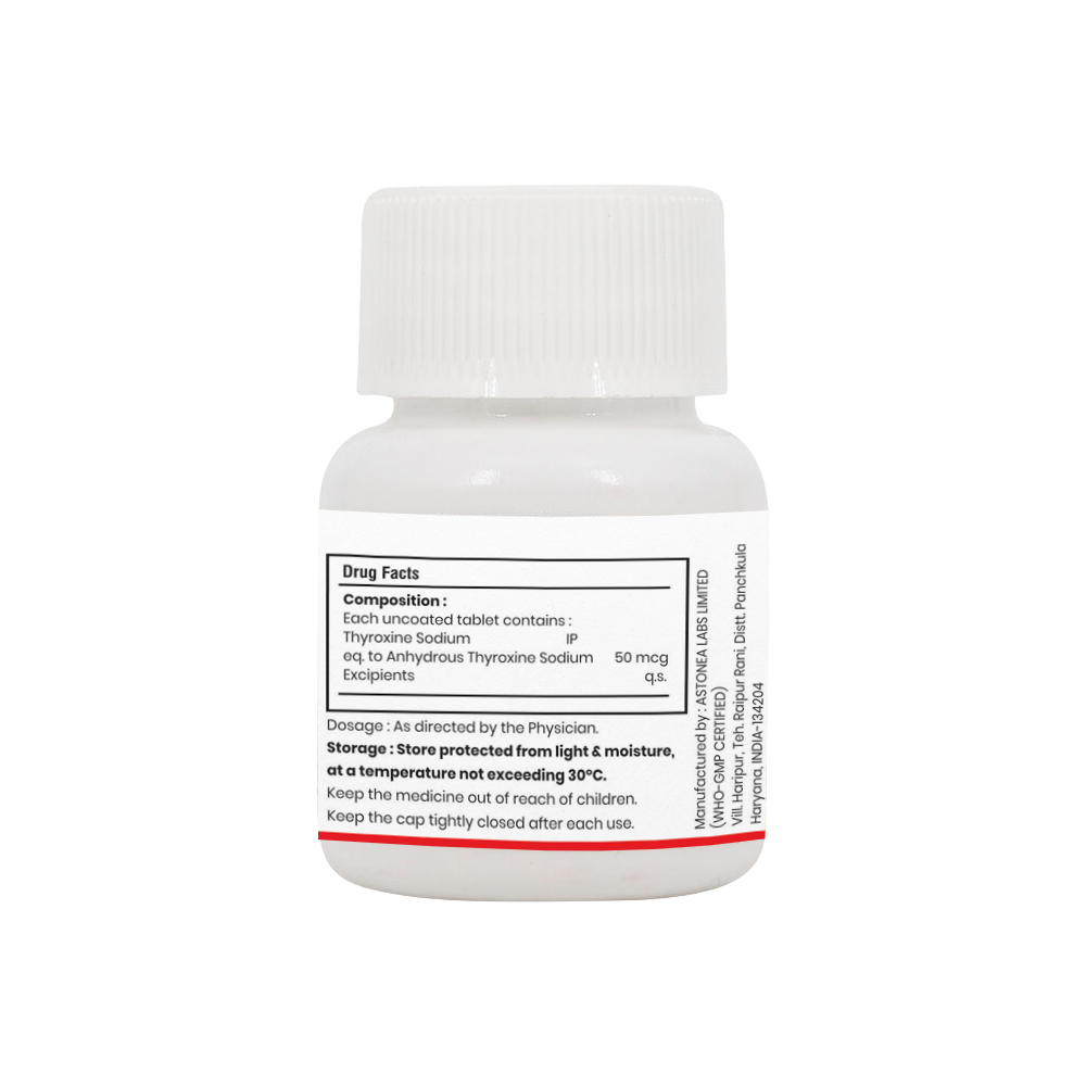 Thyroxine Sodium Tablets IP 100 mcg provide hormone replacement therapy with synthetic T4, which is bioidentical to the natural hormone.