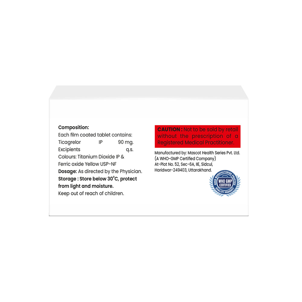 Ticagrelor 90 mg Tablet IP should not be discontinued without a doctor's consultation. Stopping it might increase the risk of a heart attack or stroke.